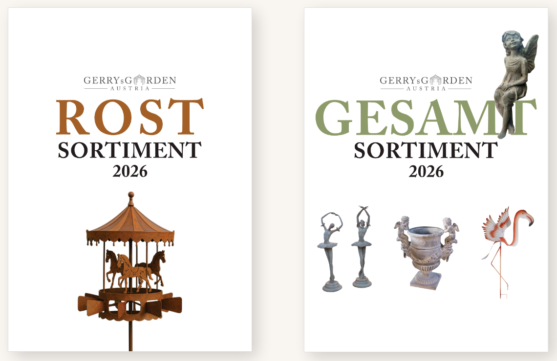 Lassen Sie sich von unserem umfangreichen Rost- und Dekosortiment bezaubern und stöbern Sie noch heute in unseren brandneuen Hauptkatalogen mit insgesamt über 700 Seiten Inspiration.